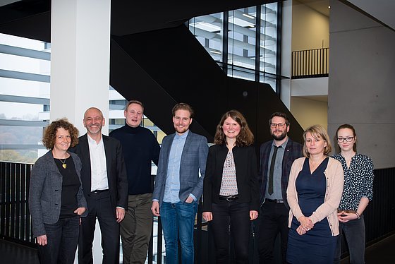 Von links nach rechts: Barbara Rehbehn (VSKA), Prof. Dr. Frank Fiedrich (BUW), Dr. Tim Lukas (BUW), Bo Tackenberg (BUW), Carolin Borgmann (IFHV), Matthias Max (DRK), Dr. Stephanie Becker (DLR) und Alexandra Schmitt (BUW).